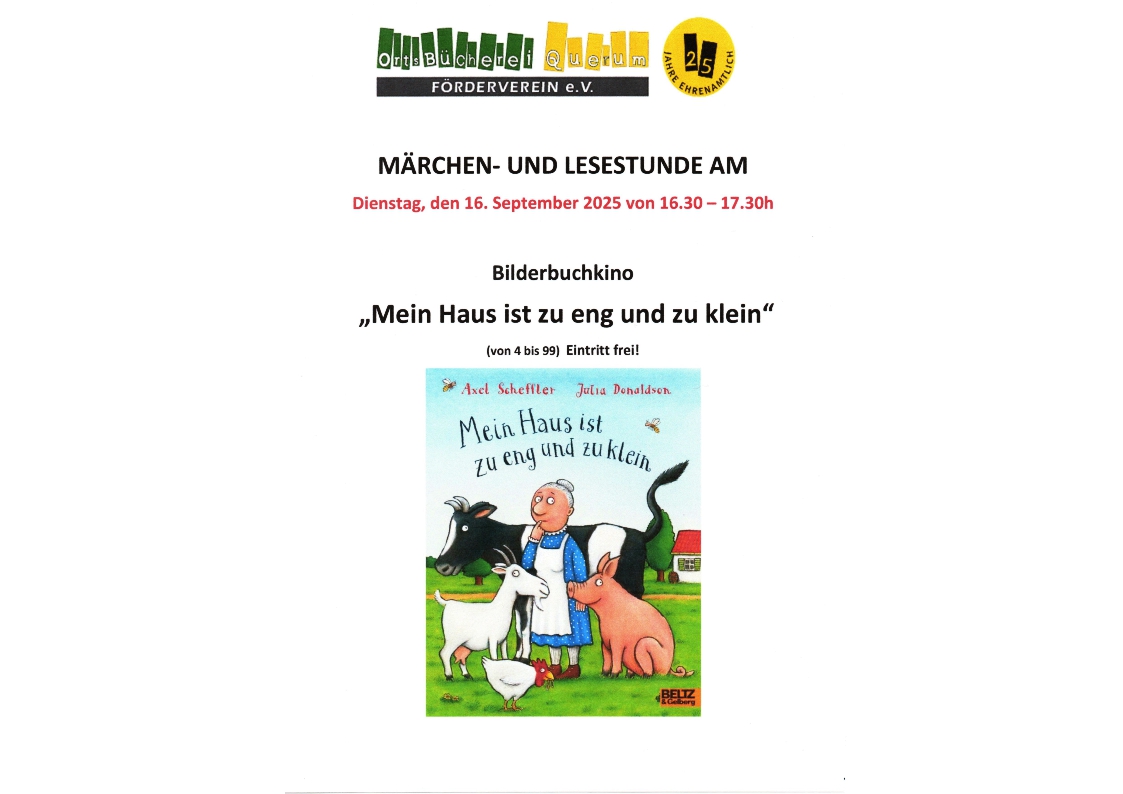 Bilderbuchkino am Dienstag, den 16. September 2025 von 16:30 - 17:30 Uhr.