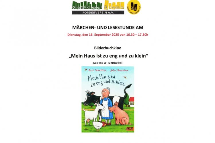 Bilderbuchkino am Dienstag, den 16. September 2025 von 16:30 - 17:30 Uhr.